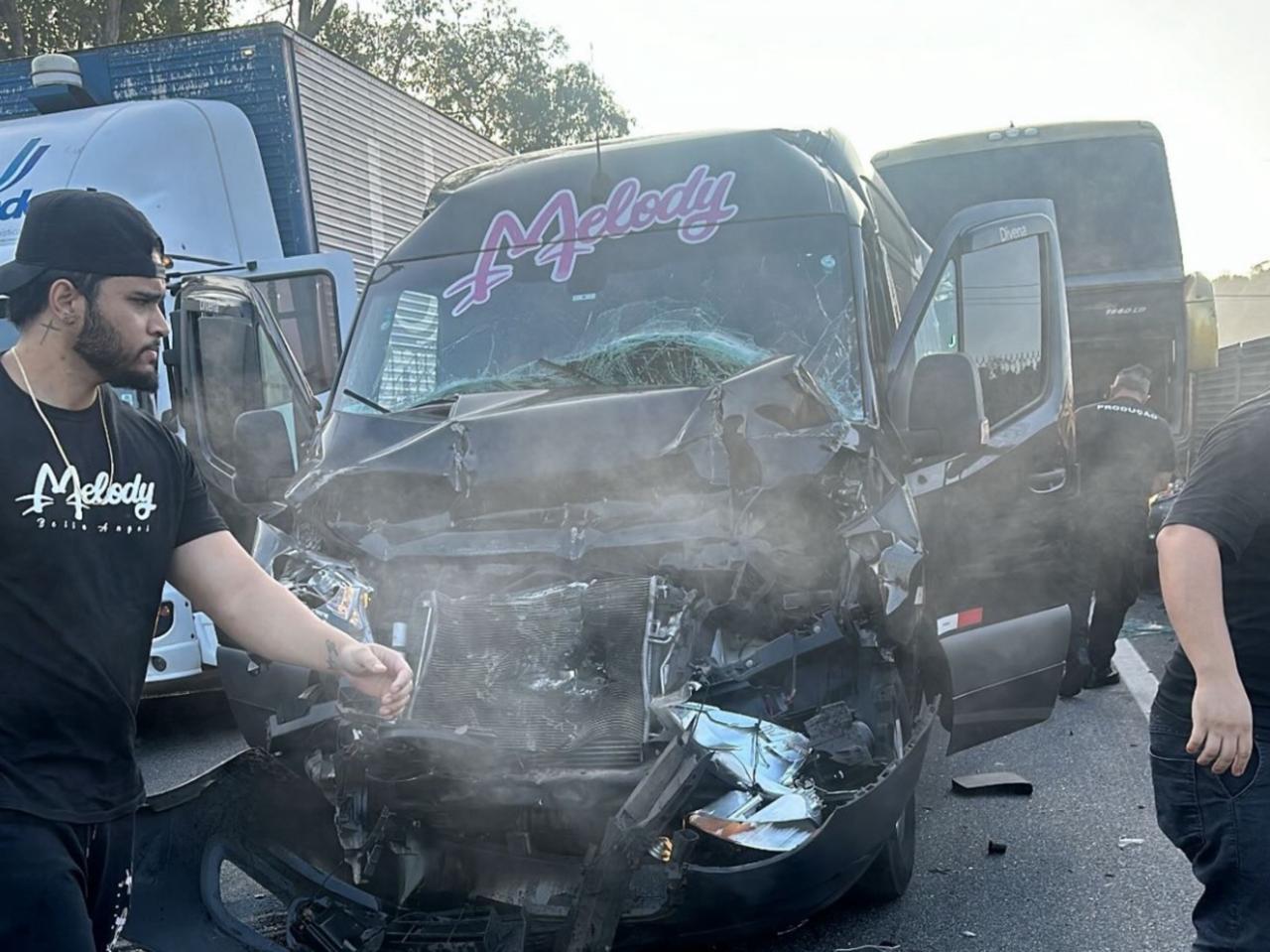 A cantora Melody postou nos stories do perfil da rede social que ela e a equipe se acidentaram quando estavam a caminho do Rio de Janeiro.